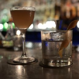 TL:DR-Great drinks, even better service, and a cool, dark, edgy, classically NYC vibe. Stopped in on a recent work trip to NY and had such a great experience I came back the very next night. The name 'Death and Co' is known by most cocktail enthusiasts partially because of their excellent books utilized by both the aspiring home bartender and seasoned veteran alike. After visiting their original East Village location, I can say they definitely live up to the hype. The menu is both diverse and intuitive enough to cater to most everyone. If, for some reason, nothing appeals to you or you manage to try every drink off the menu, you can always tap into the vast knowledge of the staff, and they are sure to meet your needs. The staff's experience is not only apparent in their spec knowledge but also in the level of service; perfectly paced (the waiter always seems to come over at the right time), amicable personalities, and surprisingly fast service once an order is in. The waiter even took notice off our repeat visit and offered us shots of our choice on the way out, I can see why this is a neighborhood favorite not to mention global namesake. Will certainly be back next time I'm in town!